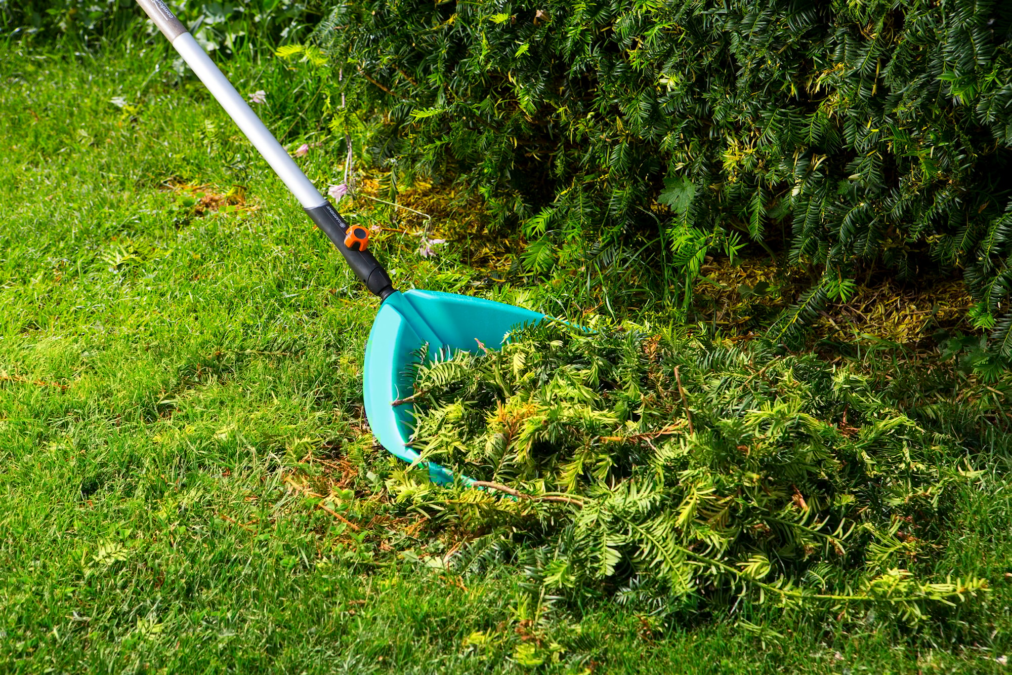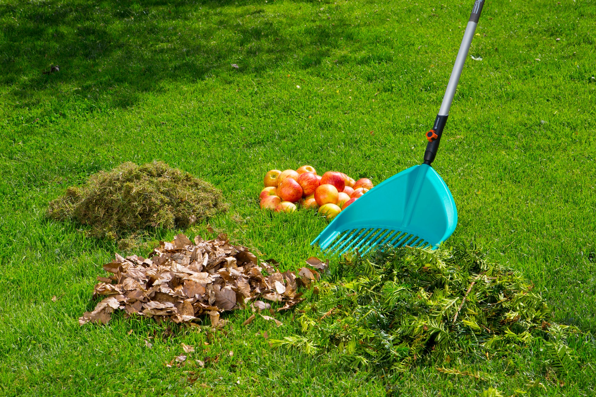 Verwenden Sie den Schaufelrechen als vielseitiges Werkzeug, um verschiedene Materialien wie Gras, Heckenschnittreste, Schnittreste, Erde und Laub zusammenzufegen und aufzunehmen. Mit der Siebfunktion können Sie Erde filtern.