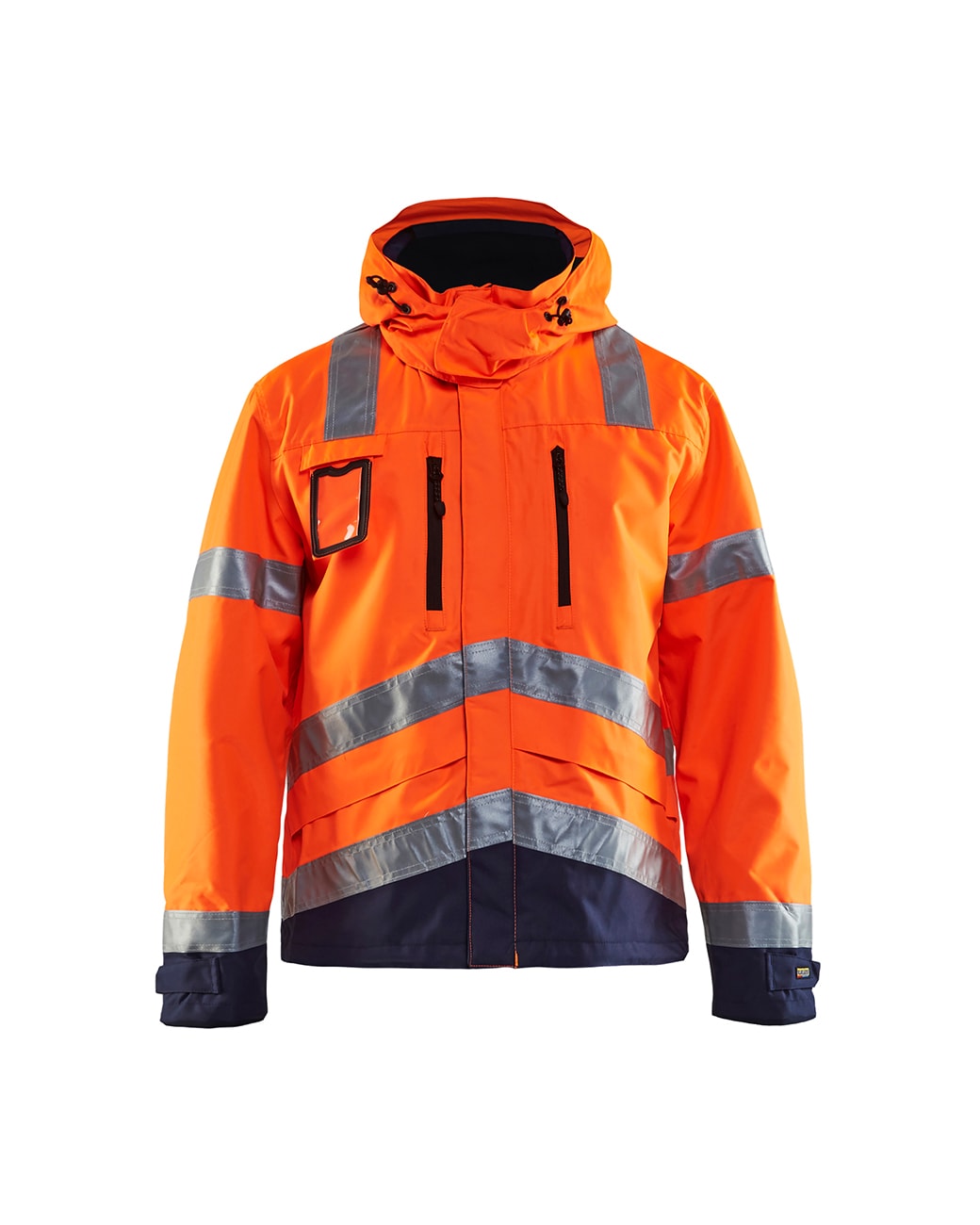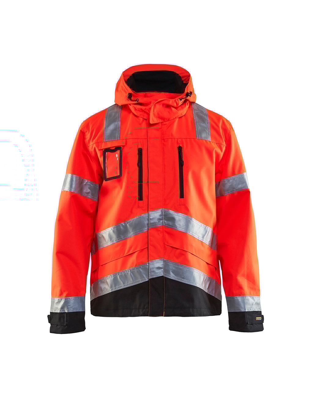 Eine leichte, wind- und wasserdichte Funktionsjacke mit verklebten Nähten. Mesh-gefüttert mit Kordelzug an der Taille und im unteren Teil der Jacke. Die Jacke hat einen hohen Kragen mit durchgehendem Reißverschluss für einen bequemen Schutz. Zertifiziert nach EN ISO 20471, XXS-XS Klasse 2, S-XXL Klasse 3, Schutzkleidung mit hoher Sichtbarkeit und EN 343 - Schutzkleidung bei schlechtem Wetter.