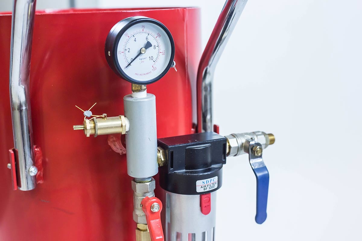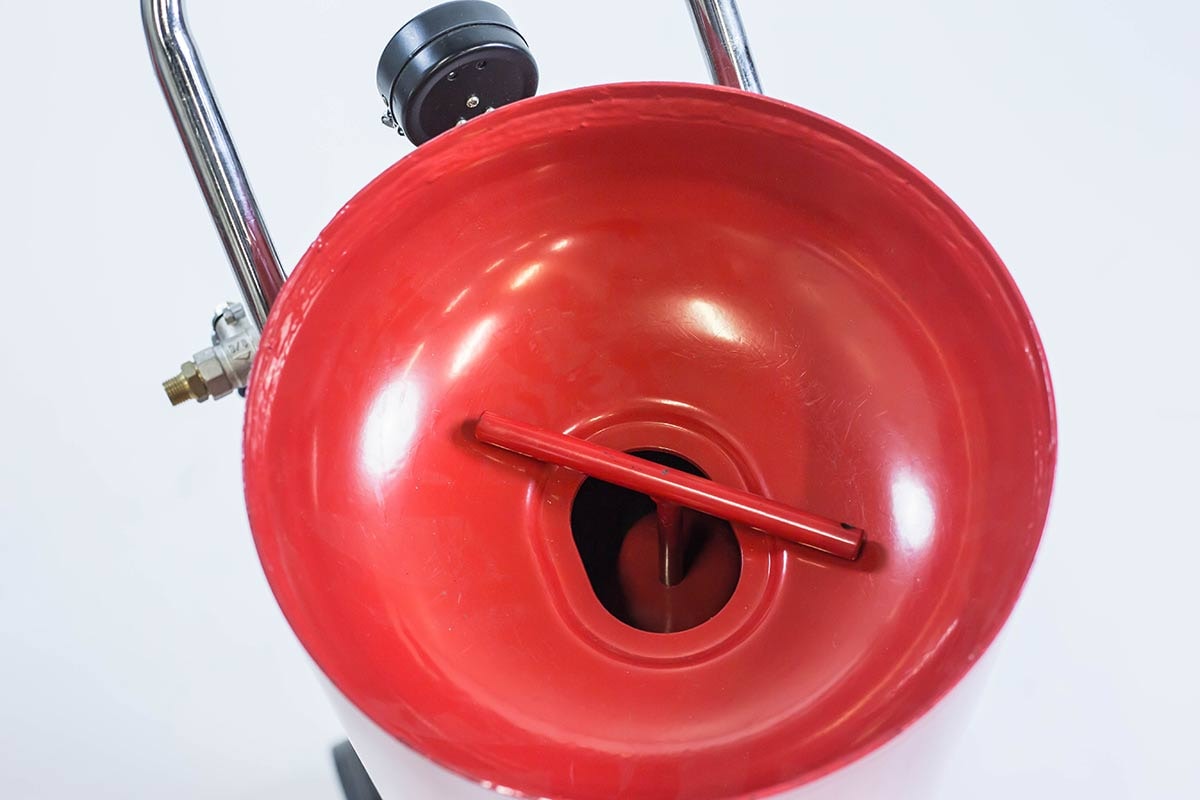 Behälter für ca. 37 Liter Strahlmittel für kleinere und mittlere Strahlarbeiten. Geliefert mit genehmigter Strahlpistole mit Totmannschalter, Strahldüsen, 2,5 Meter Schlauch, Wasserabscheider, Manometer, Schutzhülle und Radzubehör. Technische Daten: Behältervolumen: 37 Liter, Luftverbrauch: 250-450 l/min, Maximaler Arbeitsdruck: 8 bar, Maße (LxBxH): 400x300x840 mm, Gewicht: 23 kg.