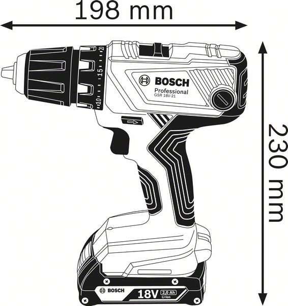 / Bosch Bohrschrauber GSR 18V-21 mit 2 Stück 2,0Ah und Ladegerät GAL 18V-40