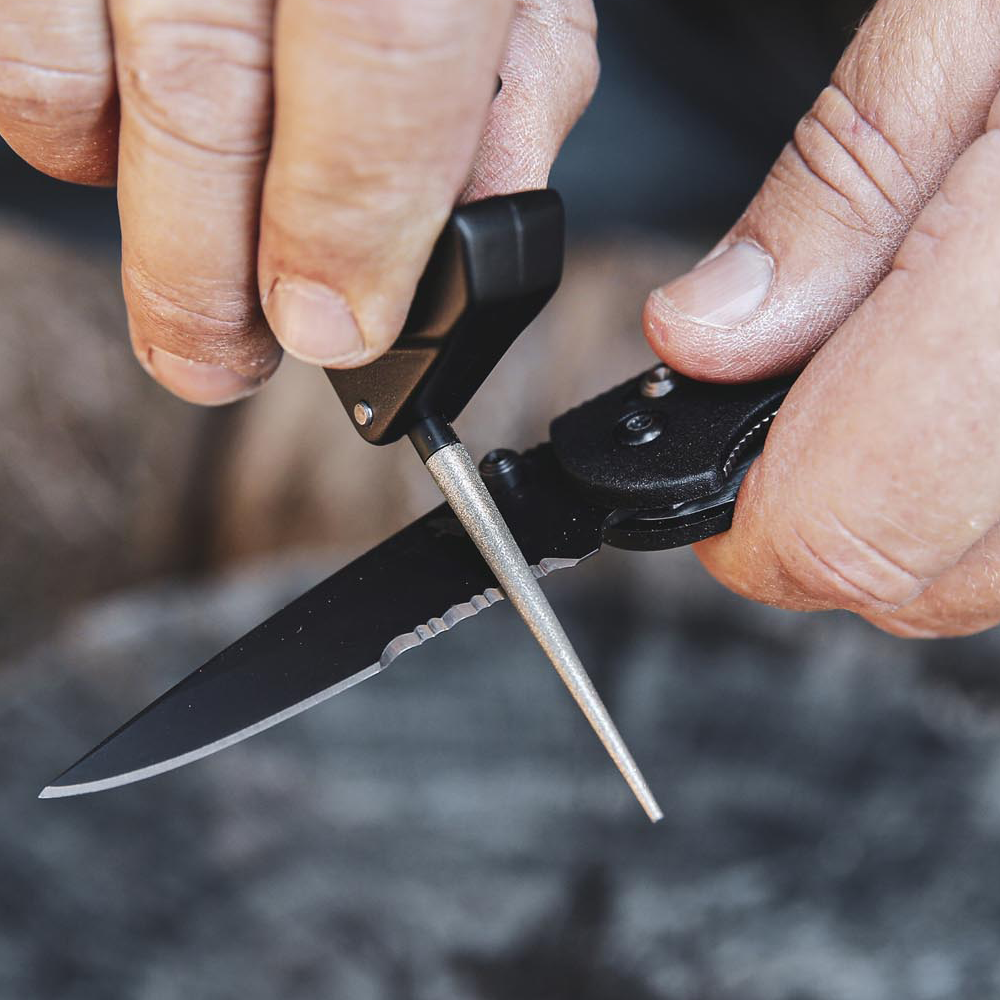 - Enthält Diamantstäbe, die ideal zum Schärfen von Wellenschliffmessern, Scheren oder anderen Zahnwerkzeugen sind.