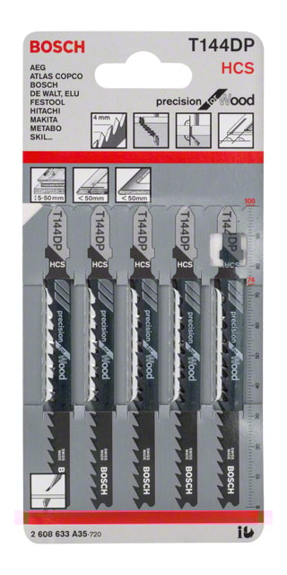 - Das T 144 DP Precision for Wood Stichsägeblatt ermöglicht schnelle, präzise und gerade Schnitte in Holz