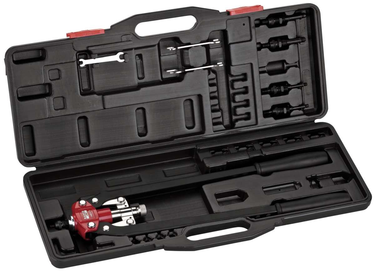 - Enthält verschiedene Aufsätze für verschiedene Nietengrößen sowie das benötigte Montage-/Demontagewerkzeug. Gebrauchsanweisung ist enthalten